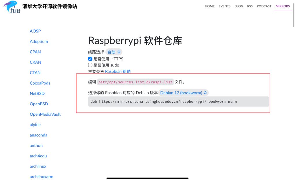 我们将源改为清华源,打开清华大学开源镜像站,找到树莓派的软件仓库